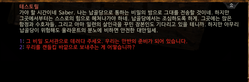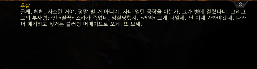 뒤에 확장판을 샀다면 영상 뒤에 동료 그대로 다시 게임이 시작되고, EE게임만 있다면 여기서 시작화면으로 돌아오면서 게임이 끝이난다