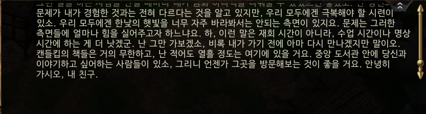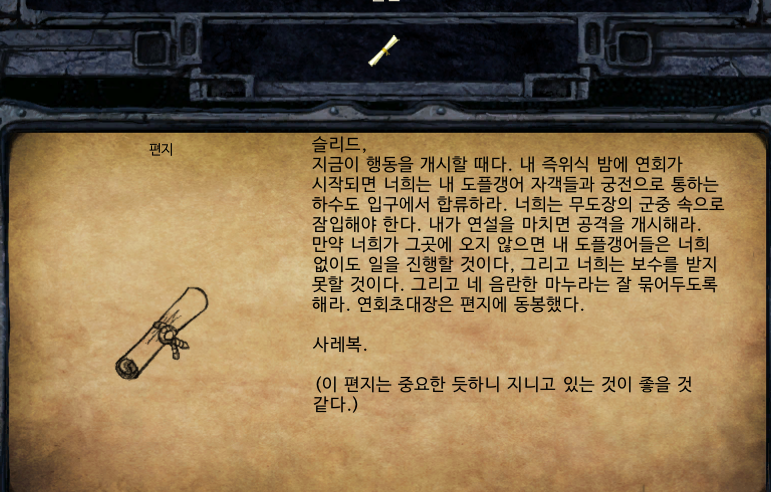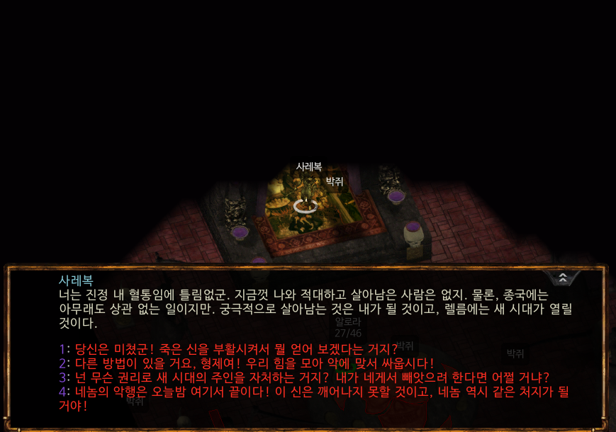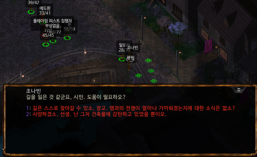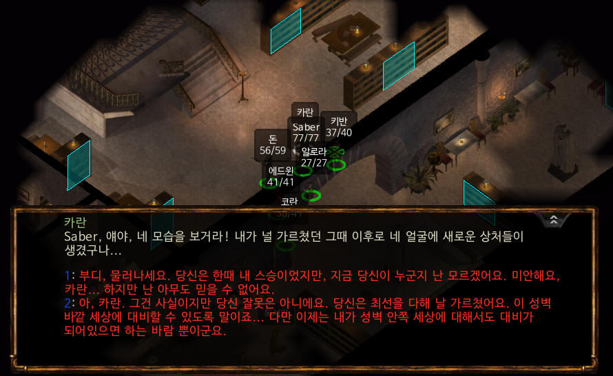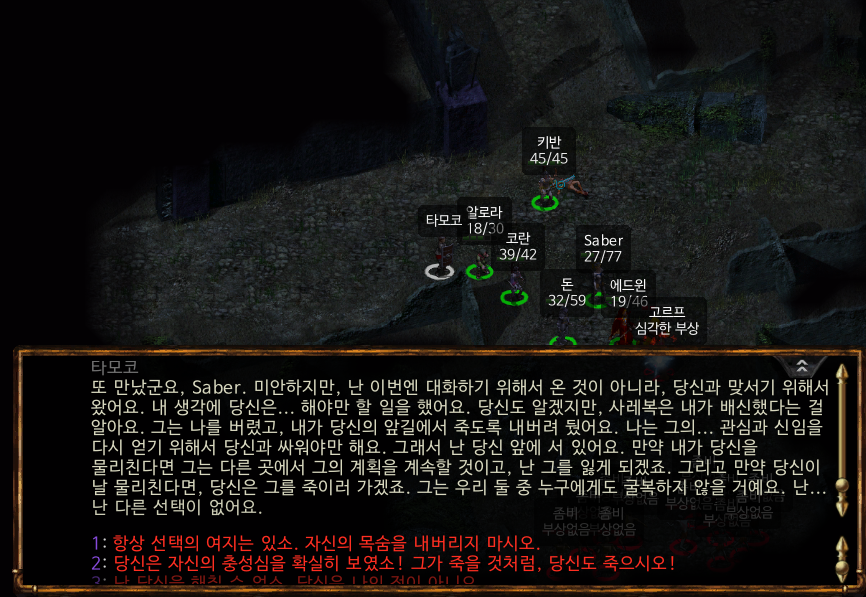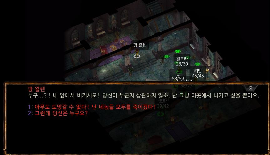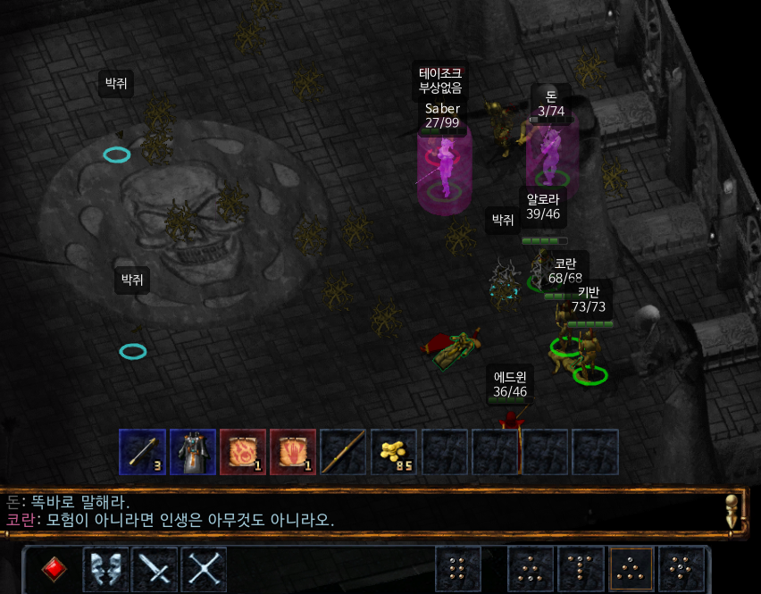 전투도 다양한 동료가 가능했지만 수치의 조정만 있을 뿐이지 클래스가 동일하면 다른 동료여도 거의 특색이 생기지 않았다 게다가 이런 옛날 게임의 움직임이 1인이였던 디바인 디비니티에서는 몰랐는데 6인이 되어버리니 자꾸 버벅거리고 서로 길막하고 겹치는 일도 자주 발생해서 게임의 흐름을 상당히 끊었던 것도 단점이였다