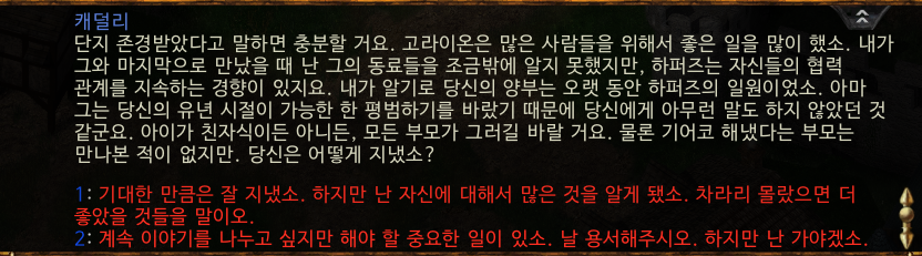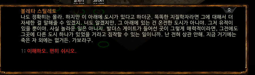 2회차는 하지 않겠지만 발더스게이트2는 좀 더 동료도 줄이고 동료간의 시너지나 각 캐릭터의 특색을 좀 더 살렸고, 전투나 조작감의 불편도 많이 개편되었을 것 같아 2회차 대신 2를 하게되지 않을까 싶다