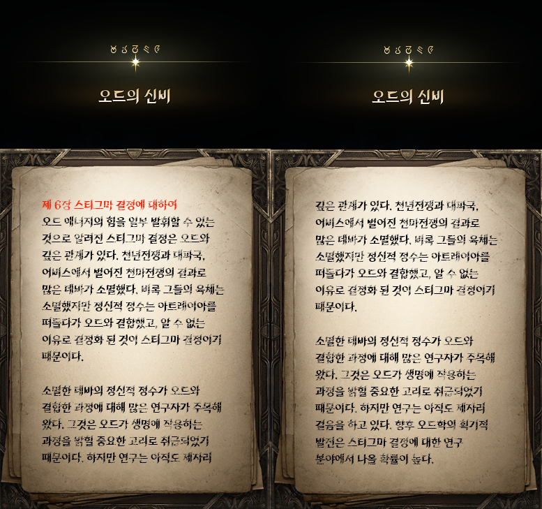 그와 더불어 에테지아와 레브론의 소소한 만담이 자칫 따분할 수도 있는 세계관 설정을 지루하지 않게 만드는 역할을 톡톡히 했다. 과학은 항상 전쟁시기에 가장 빠르게 발전한다는 이야기가 있다. 오드에 대한 연구와 결론은 오드가 처음 발견되었던 고대와 크게 다를 바가 없다. 하지만 전쟁에 유용하게 쓰이는 스티그마 결정으로써의 쓰임이 발견된 이상 오드의 비밀과 원리가 더욱 빠르게 밝혀질 것이라 예상된다. 한가지 꺼림직한 면이 있다면, 육체는 소멸하고 영혼이 아트레이아를 떠돌다가 오드와 결합하여 스티그마 결정이 되는 방식이 육체에서 영혼을 꺼내어 파프나이트로 만드는 방식과 꽤나 유사하게 느껴진다는 점이다. 앞으로 오드에 대한 설정을 어떻게 풀어나갈지 조금은 궁금하다