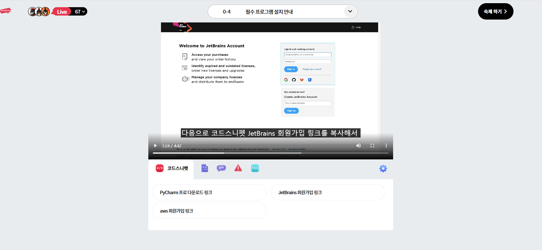 처음 하다보니 깔아야하는 프로그램이나 가입해야하는 사이트들이 생소했지만 일일히 복붙링크가 담겨있는 코드스니펫.