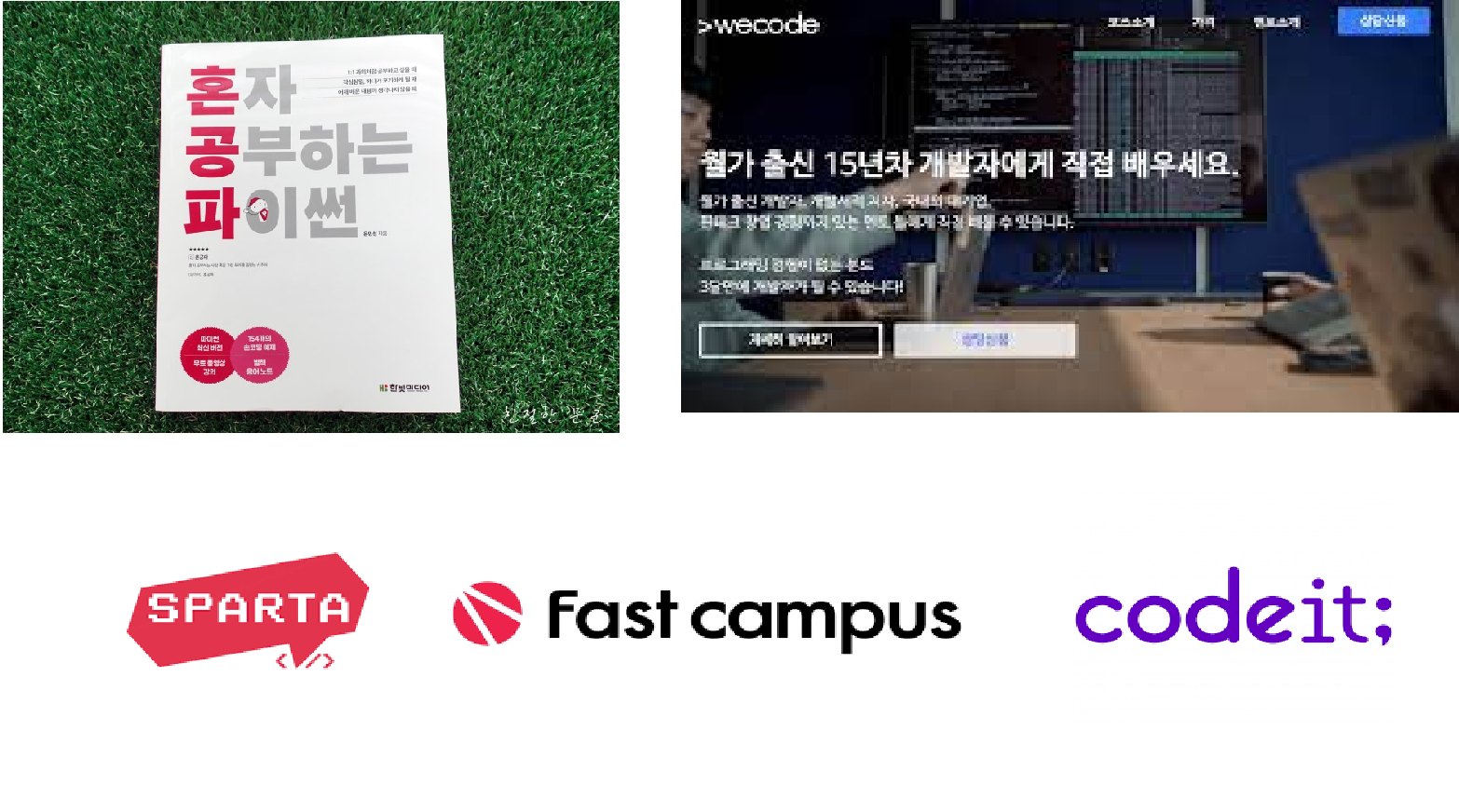 학교수업으로 ICT 융합스프트웨어 수업을 들은 나는 코딩을 하면서 꽤나 재밌고 적성에 맞았기 때문에 개발자의 길에 관심을 갖게 되었다. 코딩을 배울 수 있는 방법은 정말 많았다. 독학으로 공부하는 책부터 인강을 통한 온라인 수업 그리고 직접 찾아가서 본격적으로 부딪히는 부트캠프까지