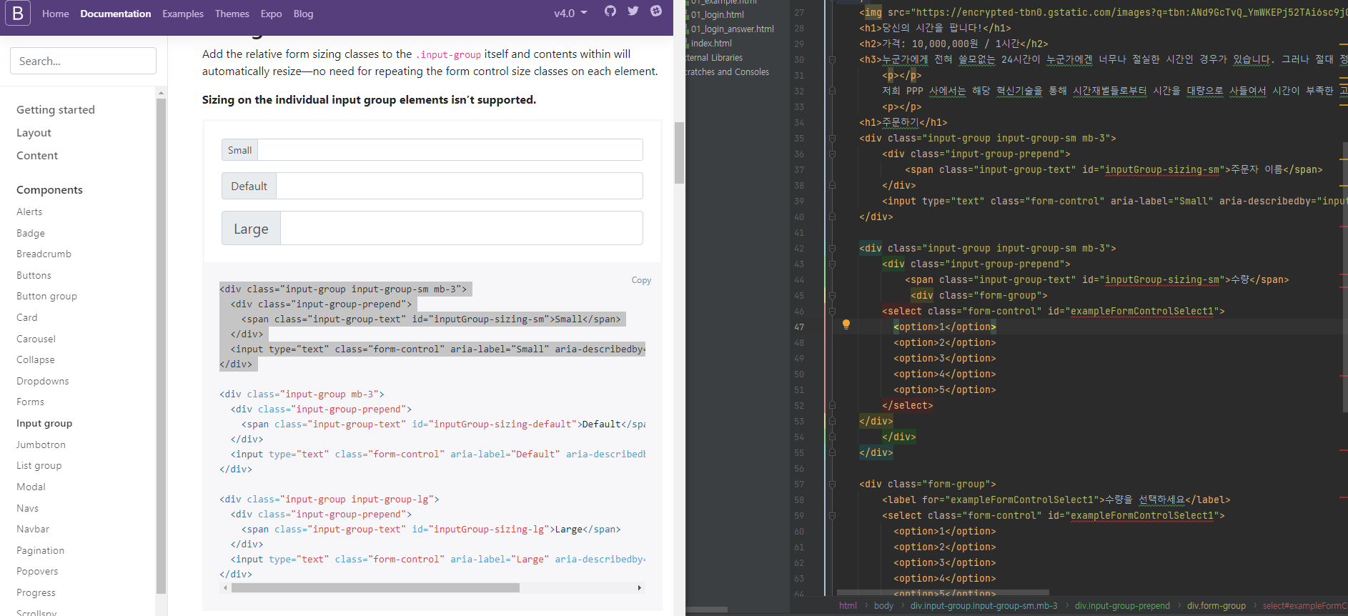 그렇다고 첨부터 다 복붙하지는 않고 쉽고 기초적인 것들은 조금씩 예제를 보면서 만드는데 의외였다. 우리가 쓰는 일반적인 페이지들의 단면이 이렇게 간단히 만들어지는구나.