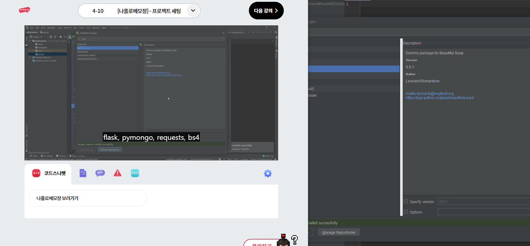 4주차~5주차동안 4개의 프로젝트를 하는데 그 중 하나인 나홀로메모장을 4주차에서 한다. 그치만 그대로 따라하면 항상 우측처럼 오류가 생긴다. 평소에도 가용시간은 한정적인데 잦은 오류로, 4주차 완주가 더 느려졌다.
