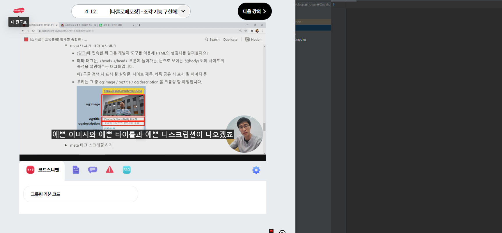 다소 힘들었던 4주차 학습도 끝났다. 사실 3주차까지는 한 번만 들어도 90~100%이해가 갔었는데 이번주차부터는 두세번 들어도 80%도 듣기 어려웠을 정도로 난이도 상승이 확 체감됐다.