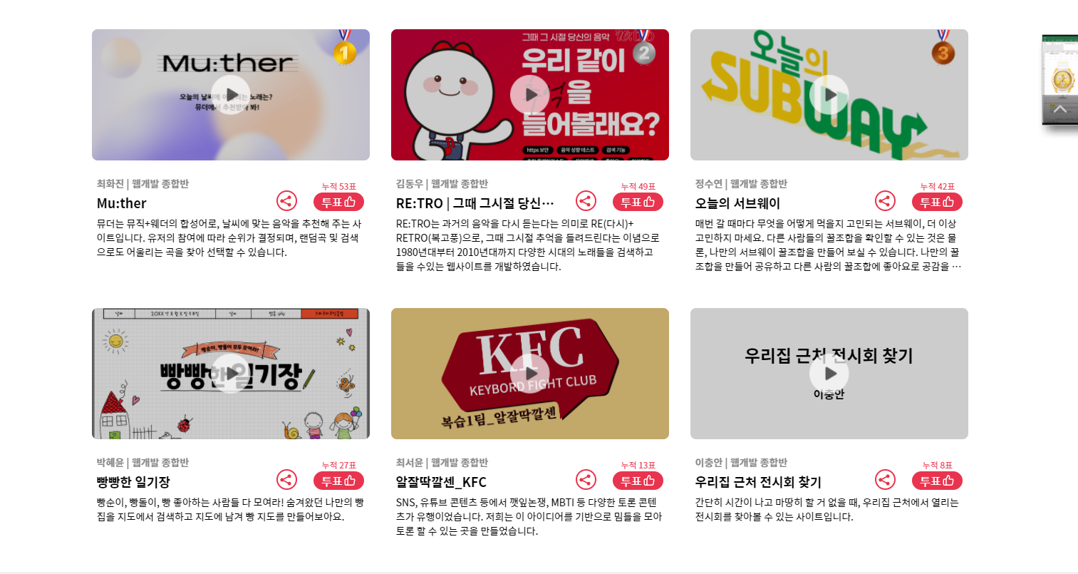 그렇다고 웹개발 종합반 자체가 별로라는 것은 아니다. 다른 주차에 비해 5주차가 별로였다는 것이 전반적으로는 초보자들이 입문하기에 적당한 난이도의 강의였다. 쓰다보니 이제야 알았는데 5주차에 단순한 서버설치, 세팅하기 이런 것 위주의 수업에 실망한 이유는 타 학생과의 결과물 차이였다.