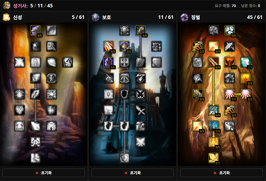 하지만 전략과 필요에 따라서는 신성40, 징벌21을 찍을 수 있습니다
