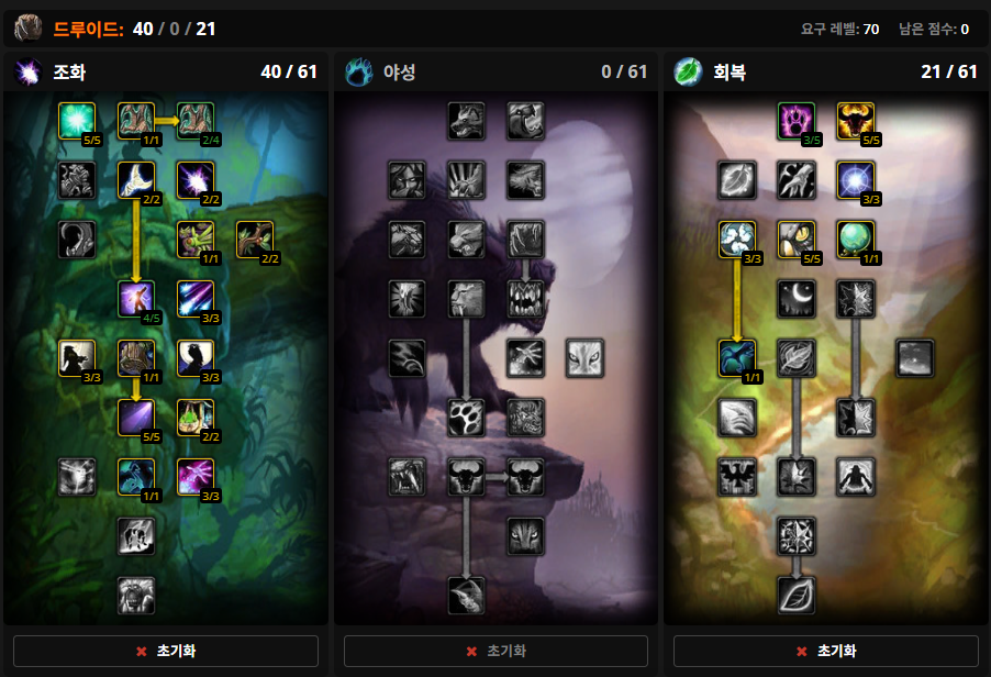조화도 괜찮은 특성이지만 야성 특성이 너무 좋아 채용율은 떨어지는 트리입니다