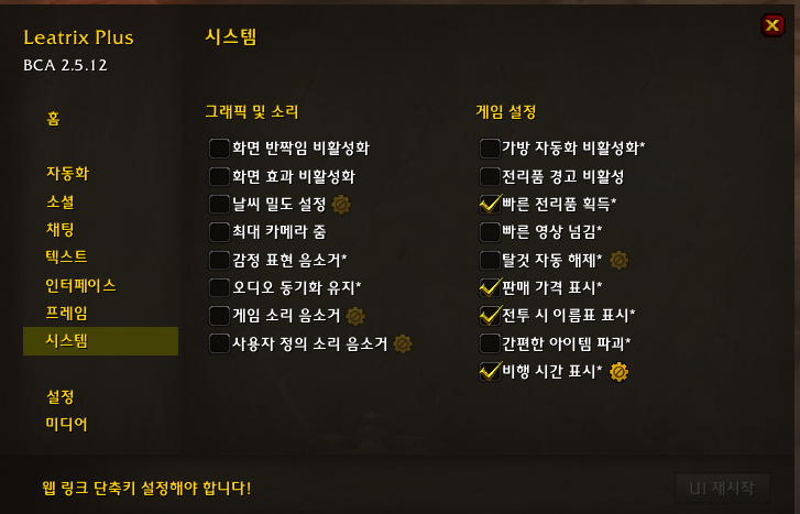 [자동] Leatrix Plus : 방대한 편의기능