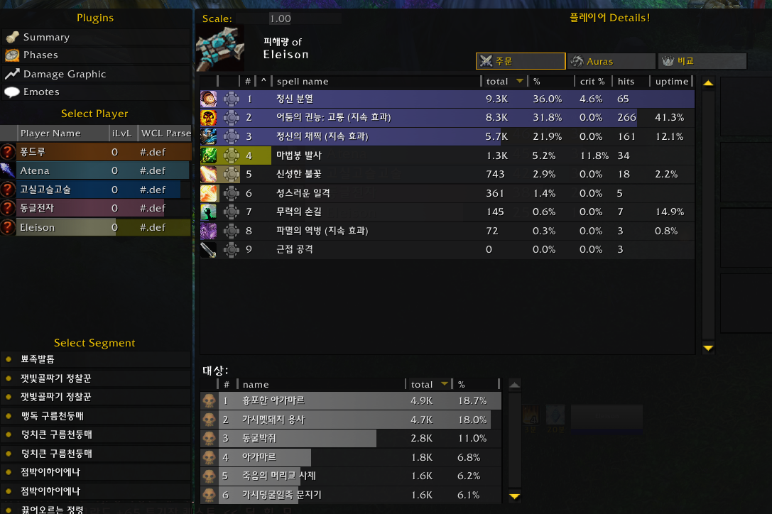 딜 미터기 애드온이며 어떤 스킬을 얼만큼 썼는지 상세하게도 알 수 있다