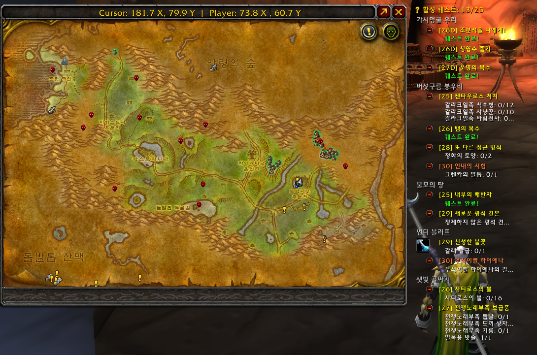 퀘스트 받는 곳과 완료하는 곳, 퀘템 위치와 동선에 깔끔한 UI와 Anchor는 덤이다. 말할 필요가 없는 최소한의 인권. 딱 1개의 애드온만들 깔 수 있다면 대부분의 유저는 Questie를 선택할 것이다