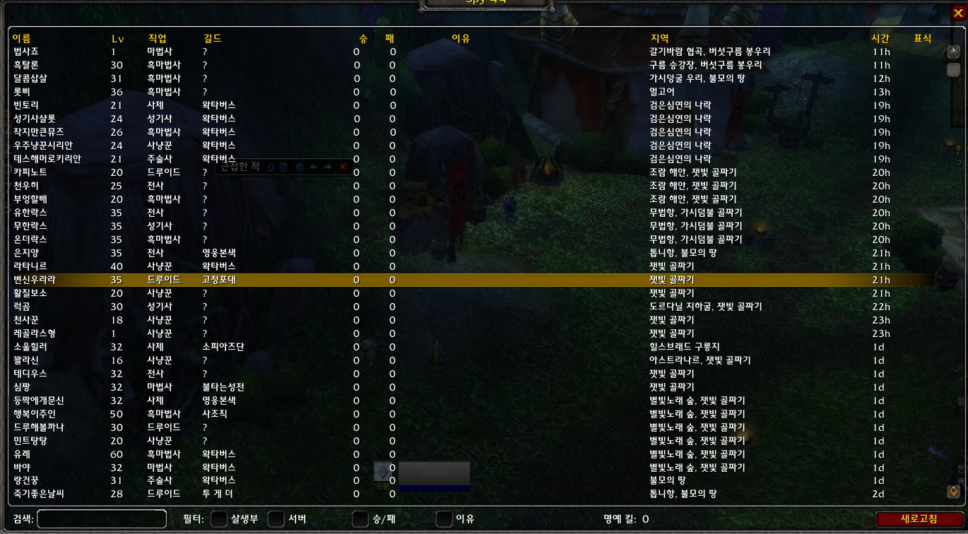 기본적으로는 근처에 누가 있는지 알려주며, 세부적으로는 최근에 마주친 적대진영 유저들을 전부 모아볼 수 있다. 승패칸을 누르면 최근에 싸웠던 적들을 모아볼 수 있고, 살생부로 적어두면 더 강한 알림음을 받을 수 있어 특정 상대를 피하거나 죽이는 데에 많은 도움을 준다