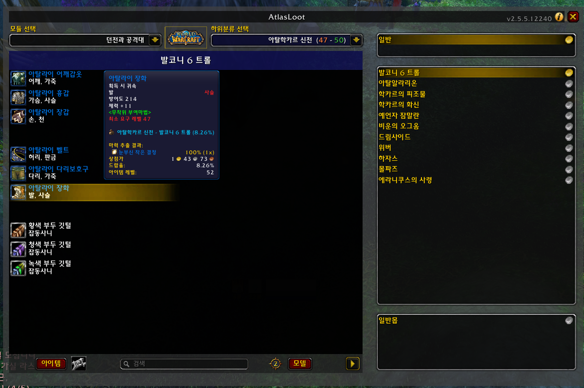 [정보] AtlasLootClassic : 던전드랍테이블 미리보기