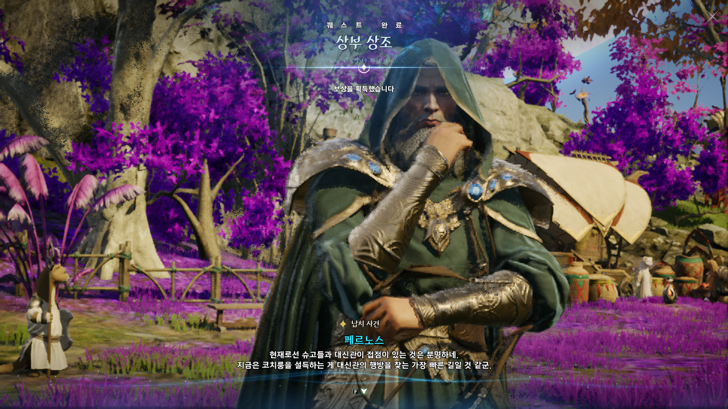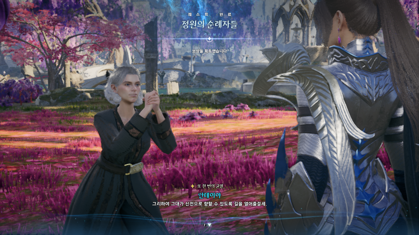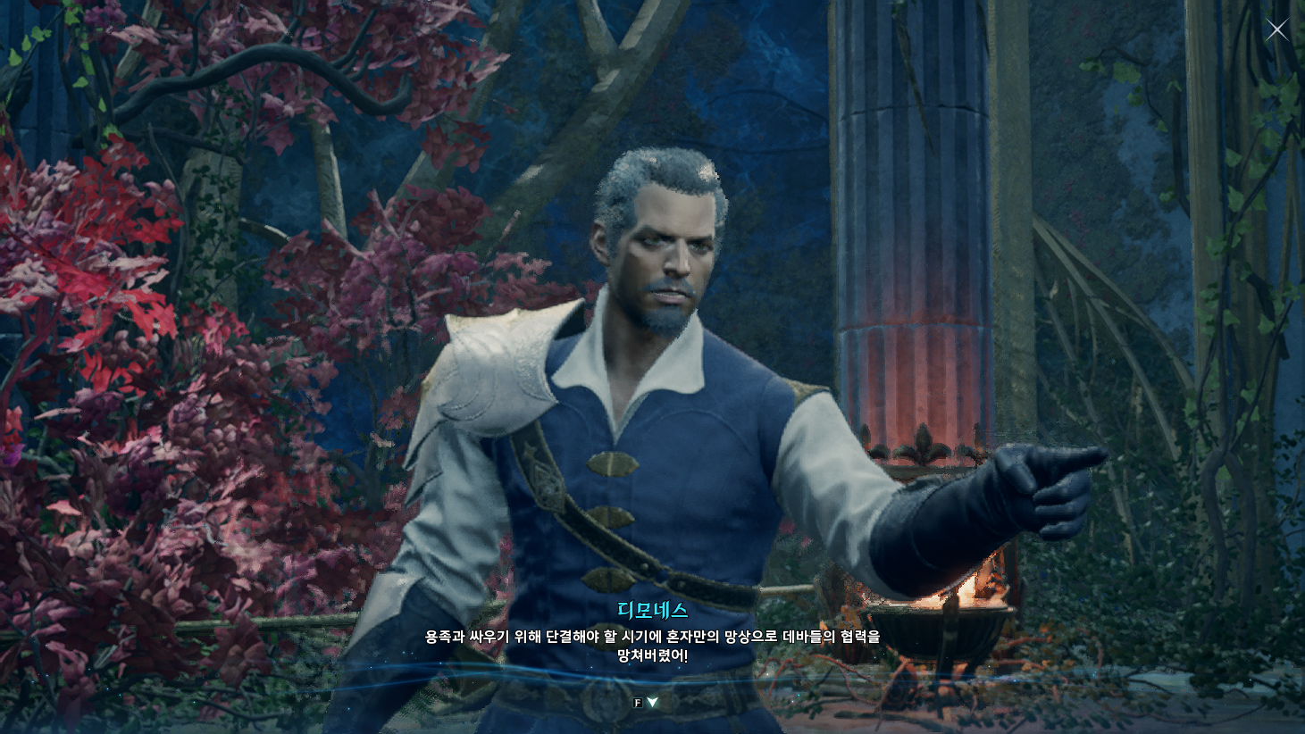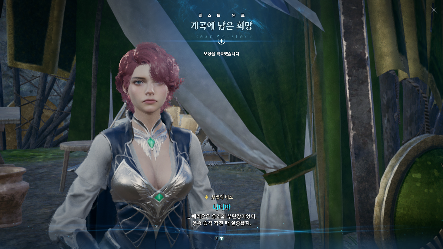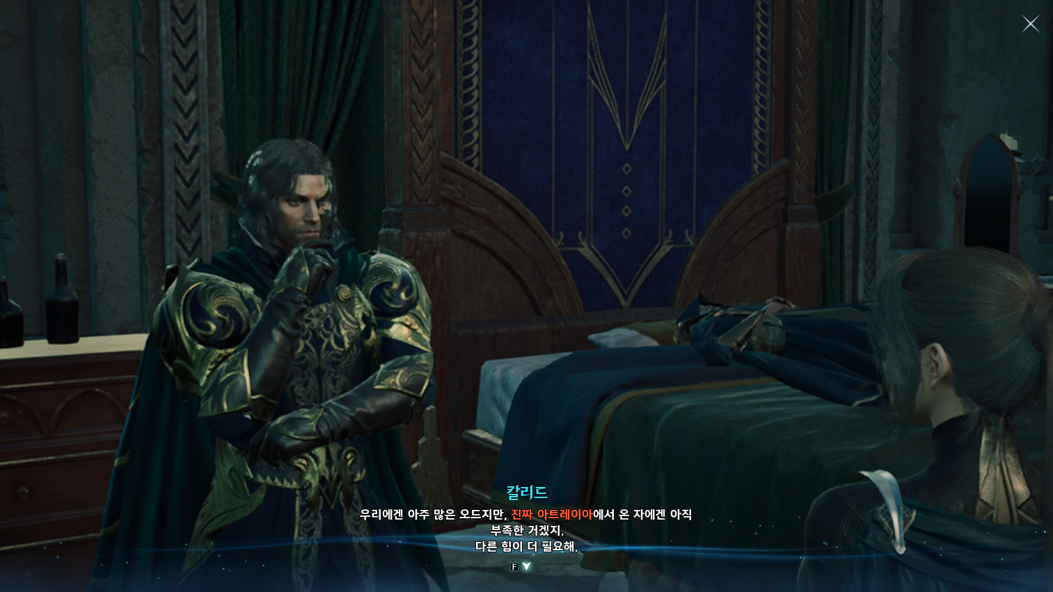 금지된 마법은 다름 아닌 사자부활술이였다. 3장에서 페르노스가 시간마법으로 과거를 돌려볼 때, 레다를 탓하는 어린 여성이 나오는데 그게 환영의 템페르 단원이 아니라 딸이였나보다. 개인적으로는 대신관이니까 용족을 막기위해 위대했던 영웅데바의 시체를 되살린다던지 혹은 자신의 신체 일부에 주신의 힘을 억지로 받아내는 그런 쪽을 생각했는데, 아쉽게도 무난한 클리셰대로 가버렸다. 마족 메인퀘를 진행할 때는 슈고 관련한 퀘스트들이 옅은 웃음을 만들곤 했는데, 이상하게 천족 메인퀘를 진행할 때는 슈고나 아울라우들이 얼빵한 짓을 해도 전혀 웃음이 나오지 않았다. 너무 판깔고 '자~ 이 부분이 저희 개그입니다! 웃기죠?' 라고 하니까 되려 웃기지 않았던 것 같다. 개그코드는 살짝 아쉽다. -25.12.02