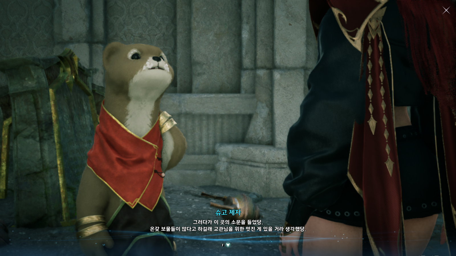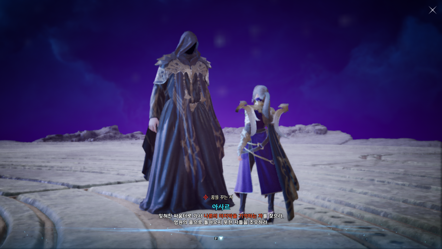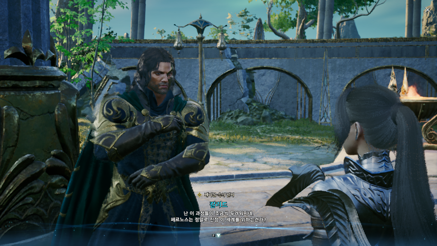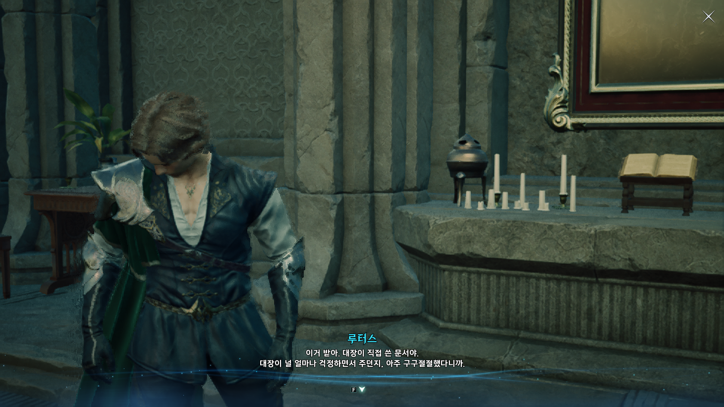 금지된 마법은 다름 아닌 사자부활술이였다. 3장에서 페르노스가 시간마법으로 과거를 돌려볼 때, 레다를 탓하는 어린 여성이 나오는데 그게 환영의 템페르 단원이 아니라 딸이였나보다. 개인적으로는 대신관이니까 용족을 막기위해 위대했던 영웅데바의 시체를 되살린다던지 혹은 자신의 신체 일부에 주신의 힘을 억지로 받아내는 그런 쪽을 생각했는데, 아쉽게도 무난한 클리셰대로 가버렸다. 마족 메인퀘를 진행할 때는 슈고 관련한 퀘스트들이 옅은 웃음을 만들곤 했는데, 이상하게 천족 메인퀘를 진행할 때는 슈고나 아울라우들이 얼빵한 짓을 해도 전혀 웃음이 나오지 않았다. 너무 판깔고 '자~ 이 부분이 저희 개그입니다! 웃기죠?' 라고 하니까 되려 웃기지 않았던 것 같다. 개그코드는 살짝 아쉽다. -25.12.02