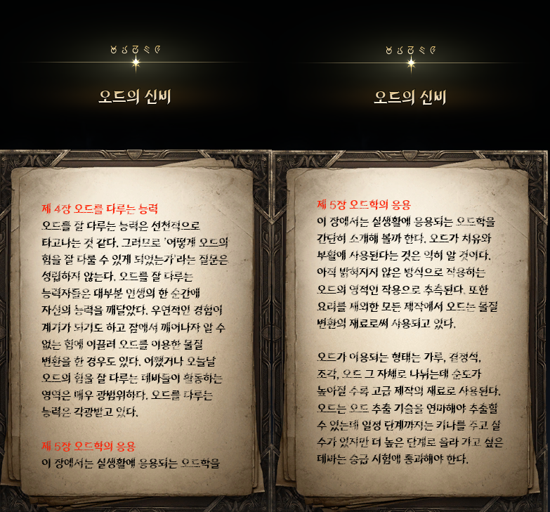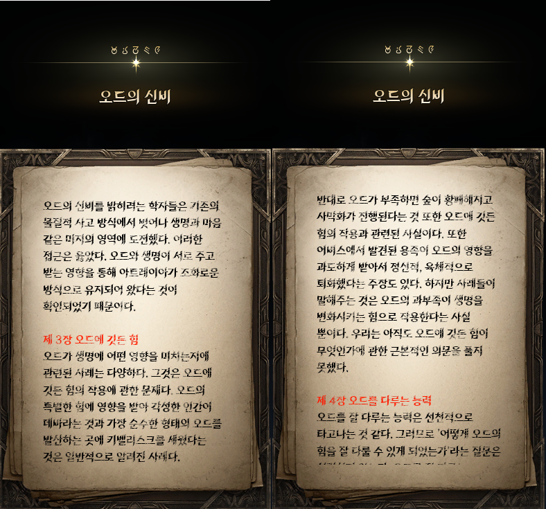 -크레이온의 실험 : 오드에 대한 상세한 설정을 엿볼 수 있는 이야기 그와 더불어 에테지아와 레브론의 소소한 만담이 자칫 따분할 수도 있는 세계관 설정을 지루하지 않게 만드는 역할을 톡톡히 했다. 과학은 항상 전쟁시기에 가장 빠르게 발전한다는 이야기가 있다. 오드에 대한 연구와 결론은 오드가 처음 발견되었던 고대와 크게 다를 바가 없다. 하지만 전쟁에 유용하게 쓰이는 스티그마 결정으로써의 쓰임이 발견된 이상 오드의 비밀과 원리가 더욱 빠르게 밝혀질 것이라 예상된다. 한가지 꺼림직한 면이 있다면, 육체는 소멸하고 영혼이 아트레이아를 떠돌다가 오드와 결합하여 스티그마 결정이 되는 방식이 육체에서 영혼을 꺼내어 파프나이트로 만드는 방식과 꽤나 유사하게 느껴진다는 점이다. 앞으로 오드에 대한 설정을 어떻게 풀어나갈지 조금은 궁금하다