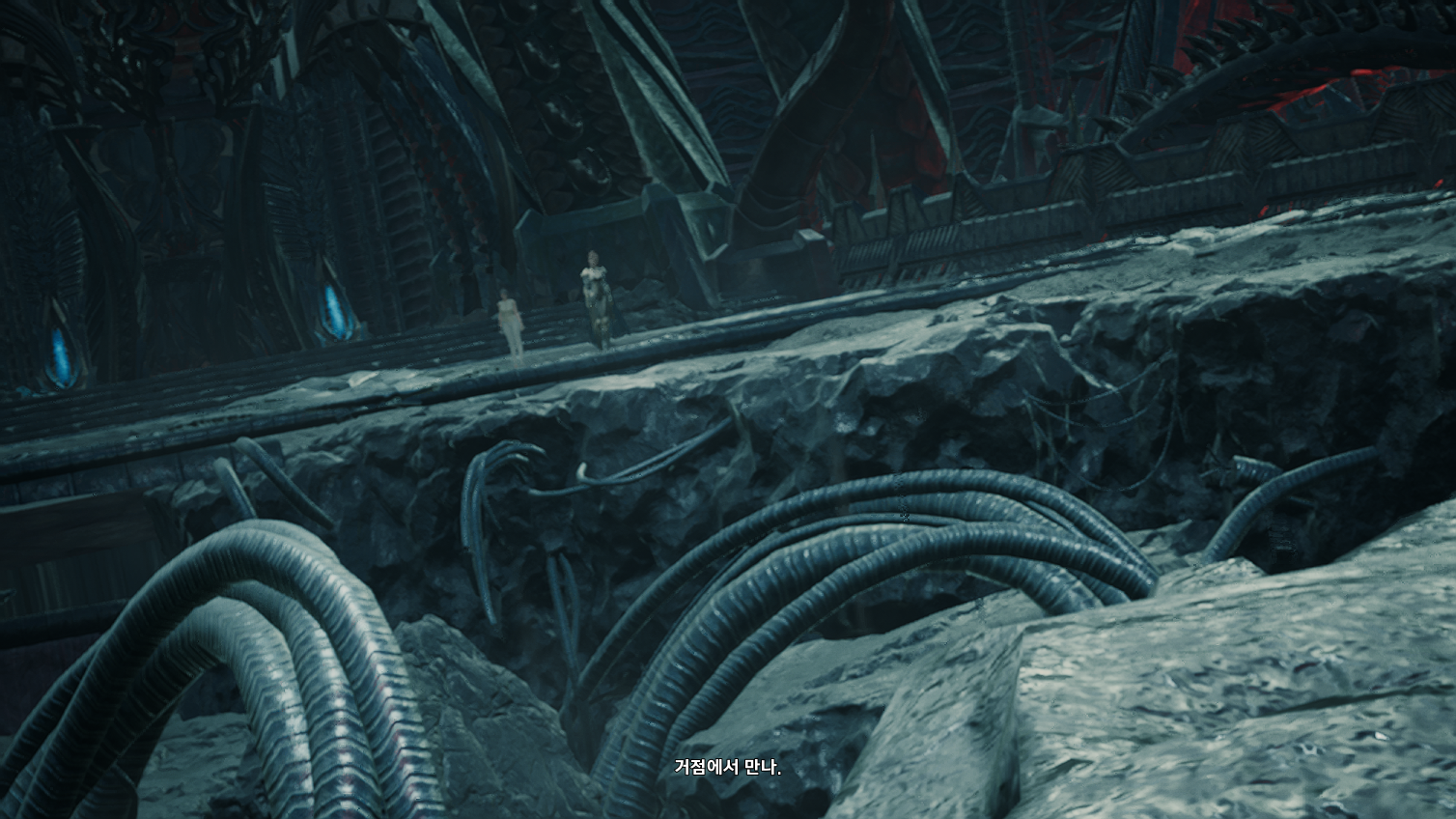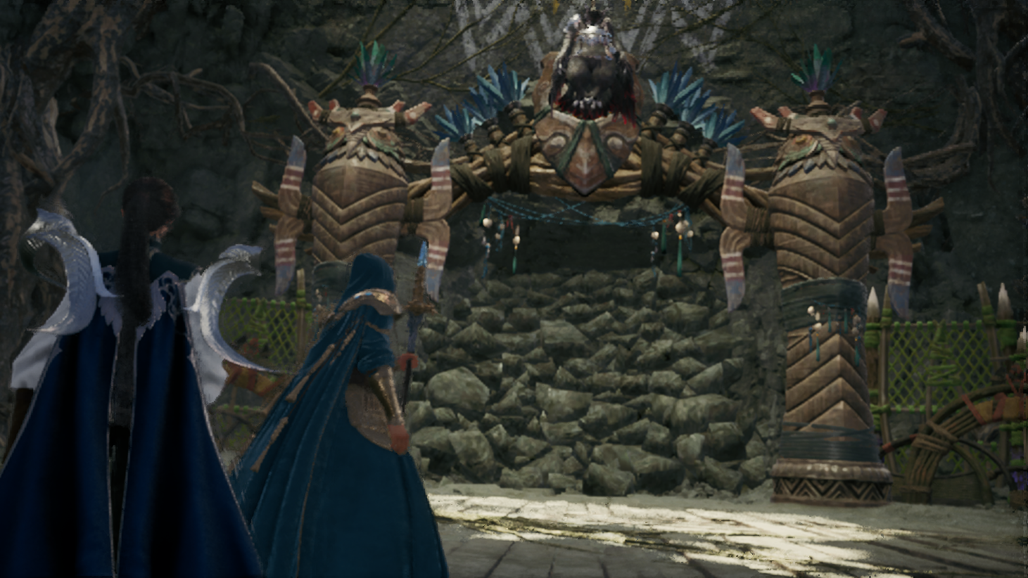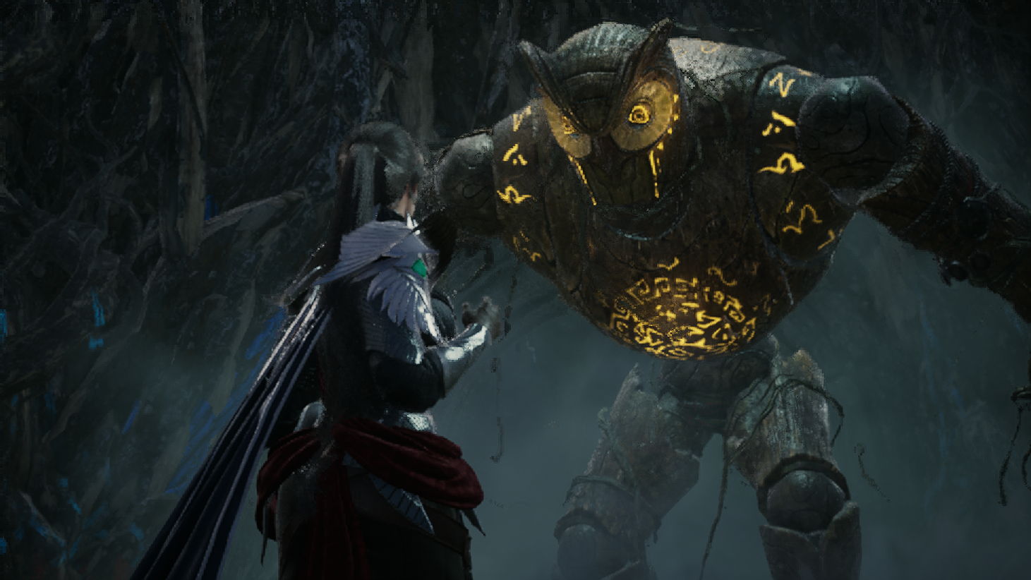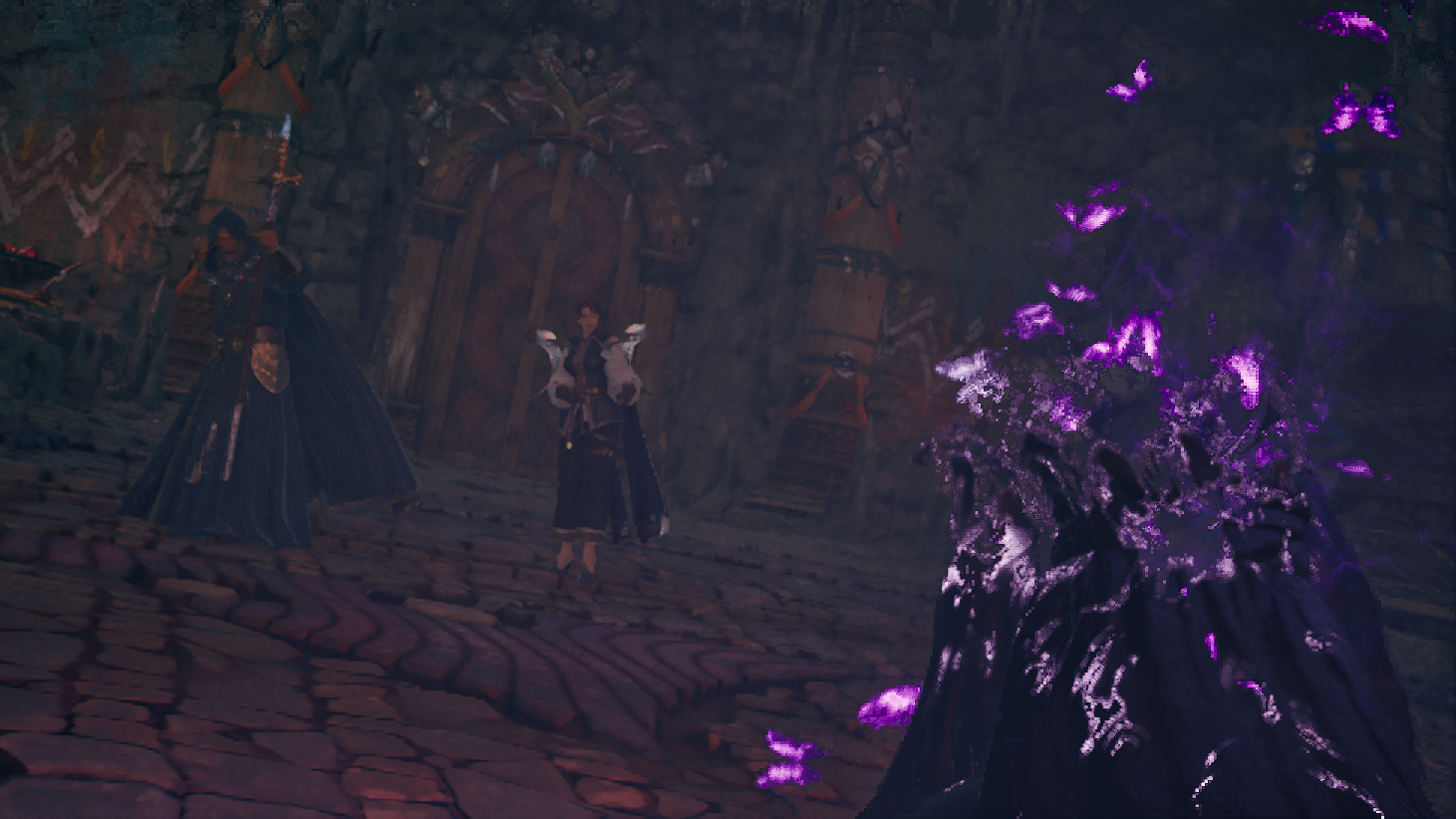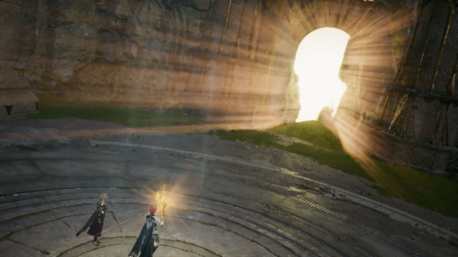 오드를 구하러 동굴 근처를 갔다가 환영신의 문양이 담긴 돌기둥을 보게되고, 루터스와 함께 안으로 진입하는데