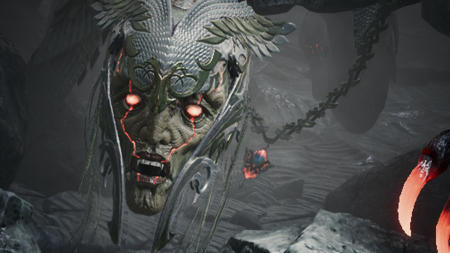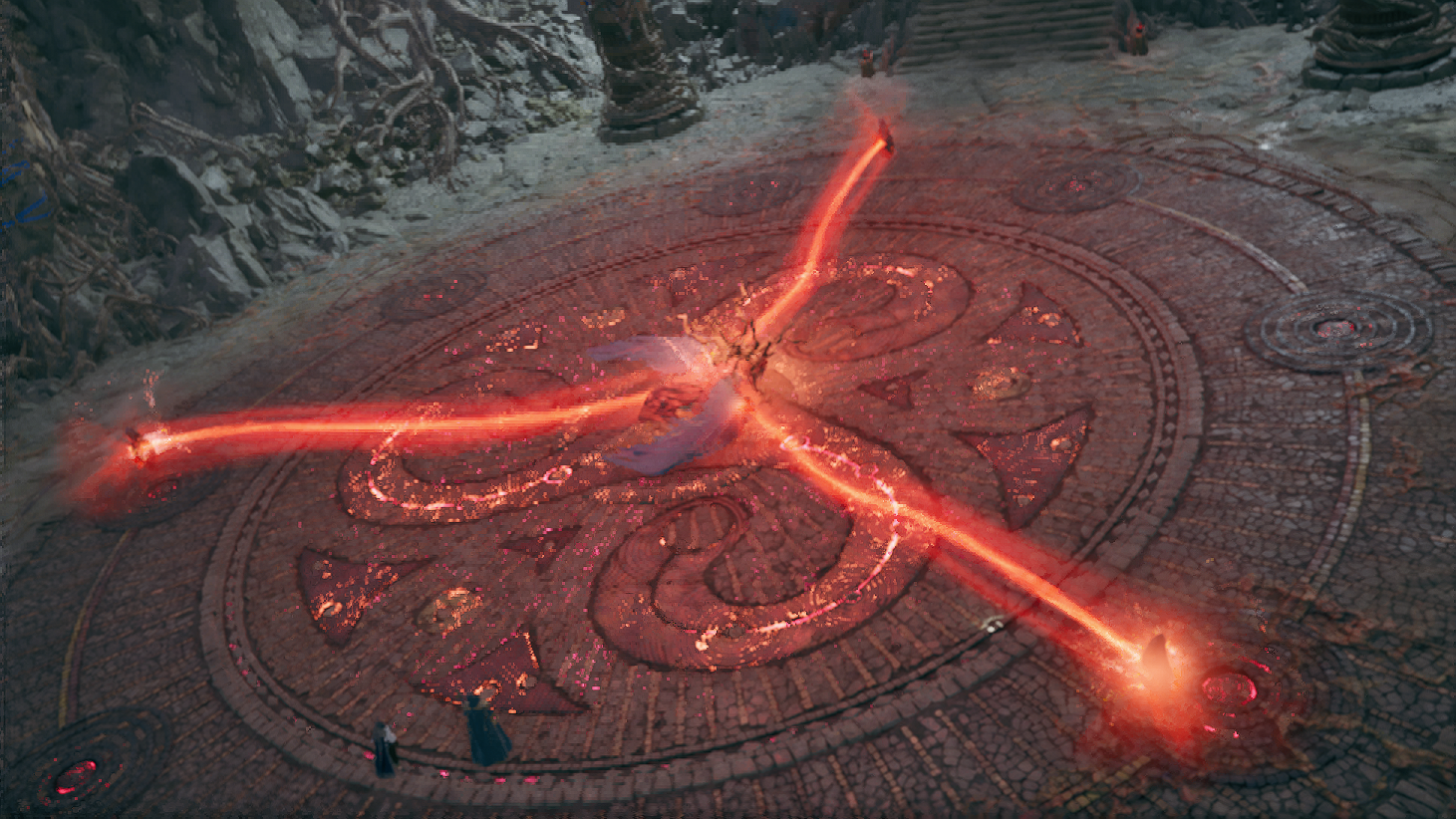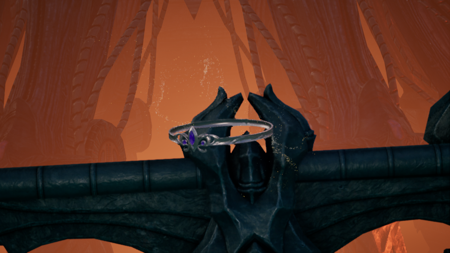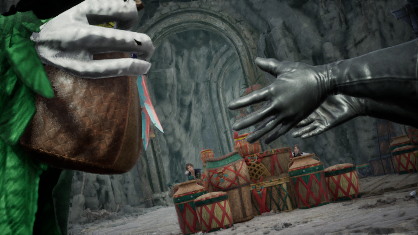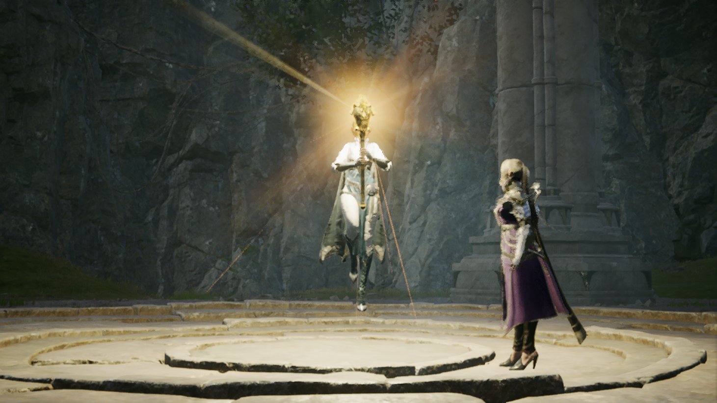 오드를 구하러 동굴 근처를 갔다가 환영신의 문양이 담긴 돌기둥을 보게되고, 루터스와 함께 안으로 진입하는데