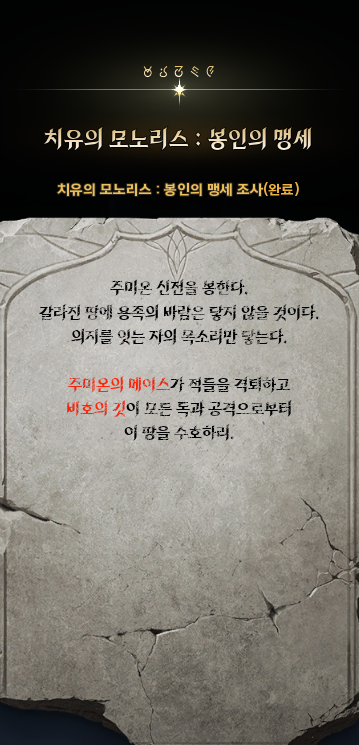 정령의 열매를 얻고 돌아오는 길에 동굴에서 가디언의 기록을 발견했다. 신마저 응답없는 상황에서 믿음이 온전하기란 어려웠을 것이다