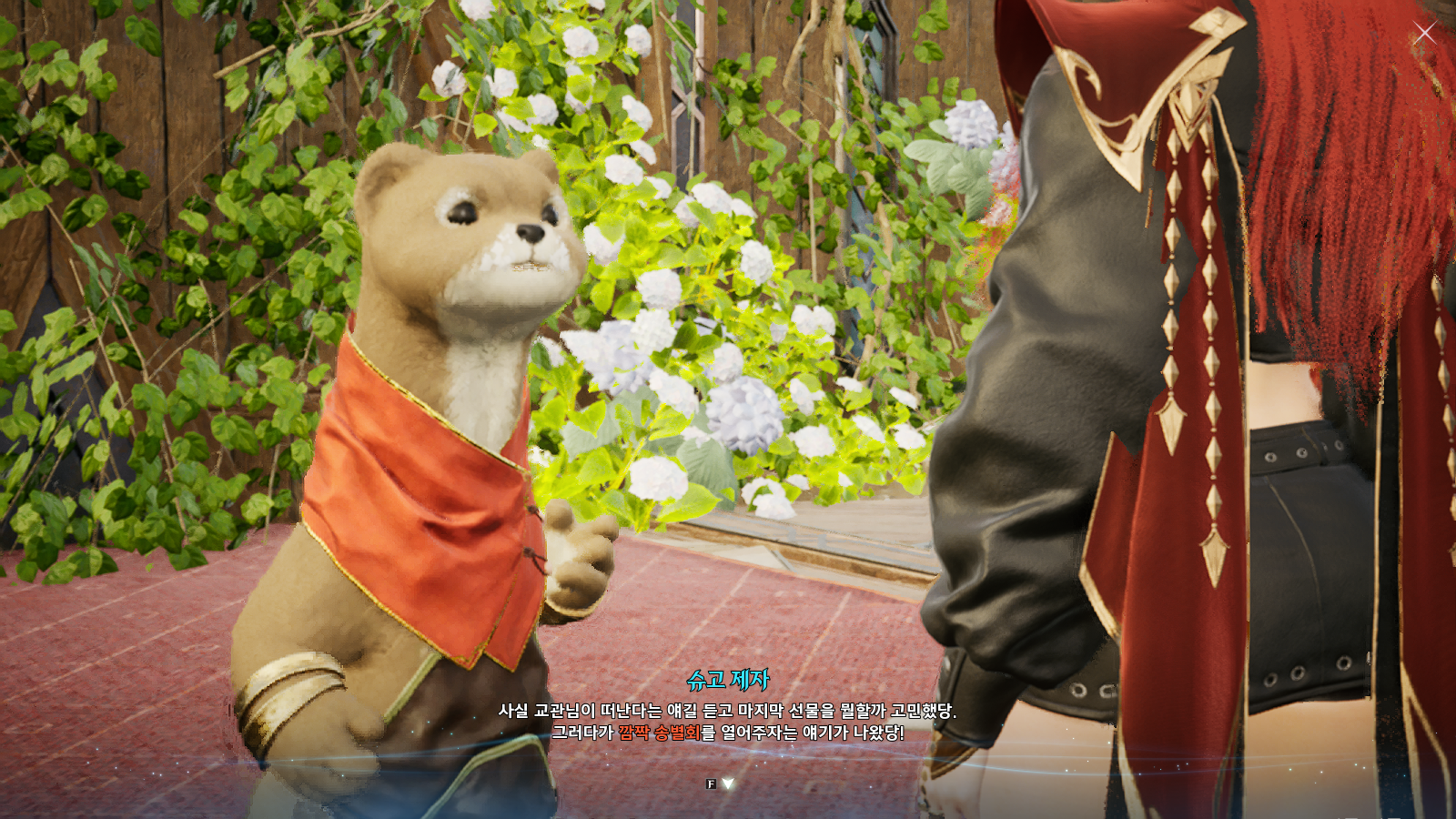 -연습만이 살길이다 / 안녕, 나의 교관님 / 완벽한 결혼을 위해 아이온2의 세계관에는 다양한 수인종족들이 등장하는데, 이 세 이야기에 등장하는 종족은 슈고와 슈라크다. 이름도 비슷하고 생김새도 족제비처럼 비슷해서 스토리를 스킵한 분들이 간혹 구분을 못하기도 한다. 귀가 둥근 것은 슈고, 귀가 시바견처럼 뾰족한 것은 슈라크이다. <연습만이 살길이다> 에서는 플레이어가 처음으로 수인종족을 만나는 퀘스트인데, 상당히 귀엽게 연출해서 많은 사람들이 좋아하는 에피소드다. 그렇게 가르쳐준 콰이링 상단의 슈고들이 플레이어가 새 대륙으로 떠난다고 할 때, 몰래카메라를 통해서 깜짝송별회를 마련해주는 이야기가 <안녕, 나의 교관님이다>. 이런 깜짝파티나 깜짝축하를 현실에서 받은지 정말 오래된 것 같은데, 게임 속에서 이런 오밀조밀 귀여운 동물들이 해준다는게 새삼 감동이였다. 그리고 슈고와 슈라크는 비슷한 생김새와 다르게 서로 앙숙인 사이다. 하지만 사랑에는 종족이 없는 법. 로미오와 줄리엣마냥 결혼하려는데 하필 결혼반지를 전해줄 배달원이 결혼시작 3시간 전인데도 오질않는다? 성공적인 결혼을 위해 결혼반지를 배달하는 이야기가 <완벽한 결혼을 위해>. 사전홍보 때는 그냥 그저그런 마스코트였는데, 이렇게 아기자기한 이야기를 연달아 세 번 때려맞으니 이제는 슈고와 슈라크가 그냥 좋다.